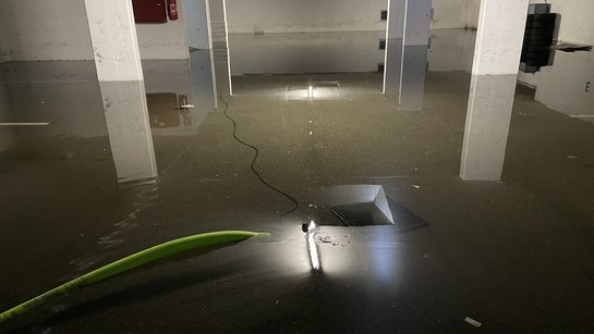 Im Roßlauf führte eine defekte Pumpe dazu, dass Grundwasser in einer Tiefgarage nicht mehr abgepumpt wurde. Die FF Wartberg pumpte das Wasser ab und verhinderte dadurch weitere Schäden.