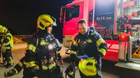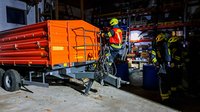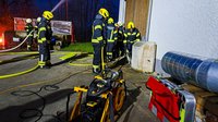 Unverzüglich wurde ein erstes Rohr vorgenommen, um die angrenzende Halle zu schützen und eine Brandausbreitung zu verhindern. Parallel dazu rüstete sich ein Atemschutztrupp mit Loop, Rauchvorhang sowie Notrettungsset aus und bereitete sich auf den Innenangriff vor.