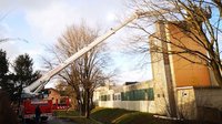 Zu einem Hackgutsilo einer Firma wurde die FF Wartberg verständigt, nachdem ein Sturm das Blechdach teilweise abgedeckt bzw. umgebogen hatte. Bei der Lageerkundung durch den Kommandanten konnte festgestellt werden, dass eine notdürftige Reparatur aufgrund der Gebäudehöhe nur mit Zuhilfenahme der Teleskopmastbühne (TMB) der FF Kremsmünster möglich ist. Das Blechdach wurde wieder zurückgeschlagen und provisorisch mit Holzstaffeln fixiert.