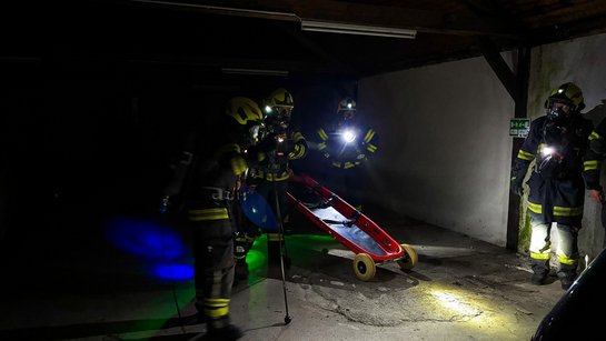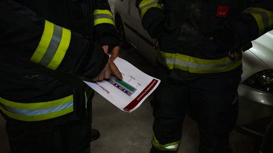 Im praktischen Teil der Ausbildung konnten die Teilnehmer das erlernte Wissen direkt anwenden. Es gab drei Praxistermine: Zwei für die Brandbekämpfung und einen für die Suche und Rettung von Personen in einem stark verrauchten Tunnel, um ihre Fähigkeiten in der Orientierung und Rettung unter extremen Sichtbedingungen zu verbessern.